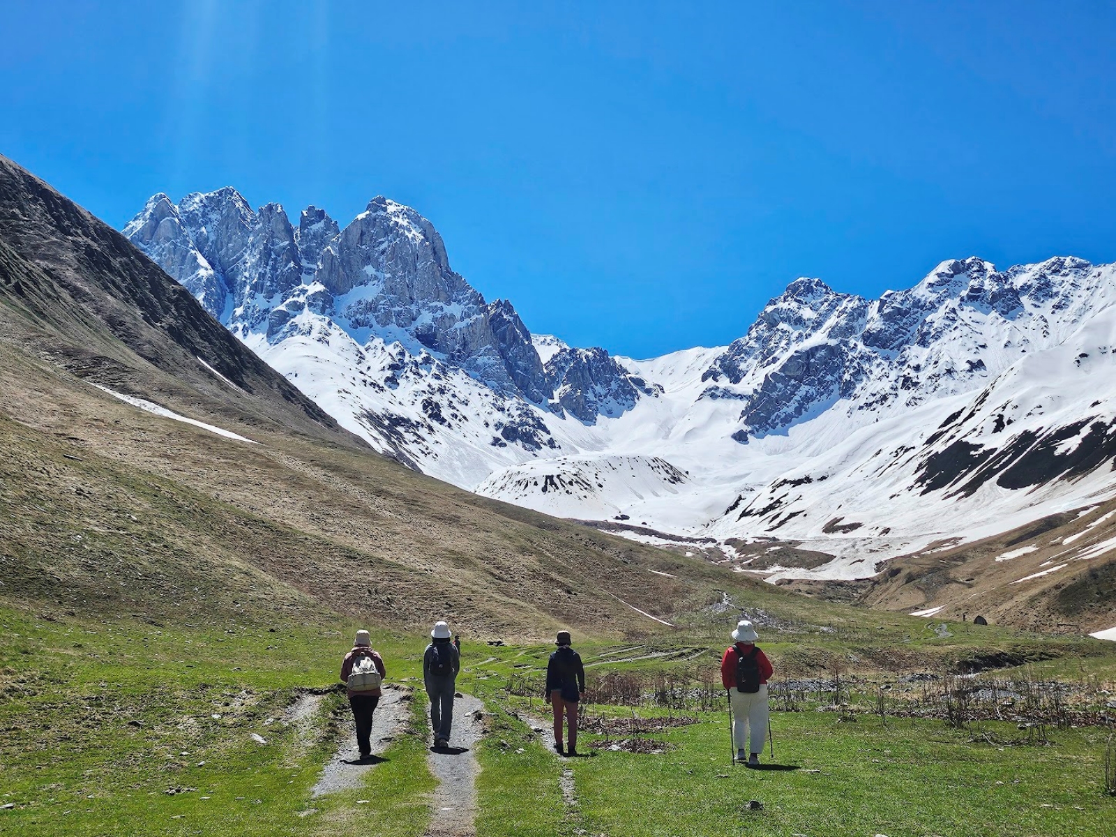 왕복 약 4~5시간 코스로, 해발 3,700m의 차우키산(Chaukhi Mountain) 을 따라 펼쳐지는 장대한 풍경을 감상할 수 있습니다.